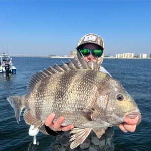 Spring Break is here! The beaches from Rosemary, Inlet Beach, Seaside all the way down to Blue mountain and Dune Allen along 30A is getting busy. The fishing has been hot the last week. Pictured is a huge sheepshead we caught last week on a live shrimp along with a big bull redfish caught by one of my return clients Mark from Naples FL. The water is warming up to the mid 60s and the fish are getting active. It will only be a couple more days until the spanish mackerel make their spring migration to give us another species to target. Spring is all about catching multiple species. The pompano numbers off the beach in the surf have also increased in the last couple days. We look forward to having you on the water this spring. Remember to book your trip because we are filling up fast! Hope to see you on the water.